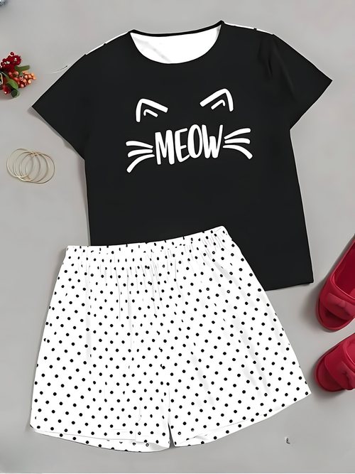 Girls Short Sleeve Tops & Long Pant Co-ord Set - Black X White