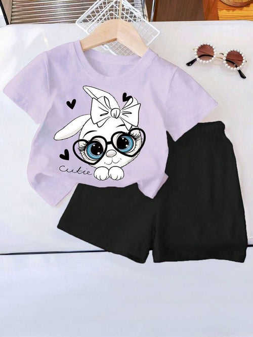 Girl's Short Sleeve Tops & Long Pant Co-ord Set - Soft Pink X Black