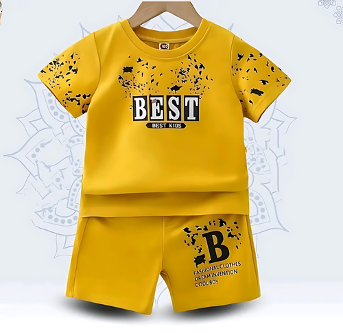 Girls Short Sleeve Tops & Long Pant Co-ord Set - Peach Yellow